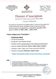 Inscription des candidats admis au Concours d’accès aux Licences d’Éducation S1 et S3/S5 Passerelles 2025/2026.